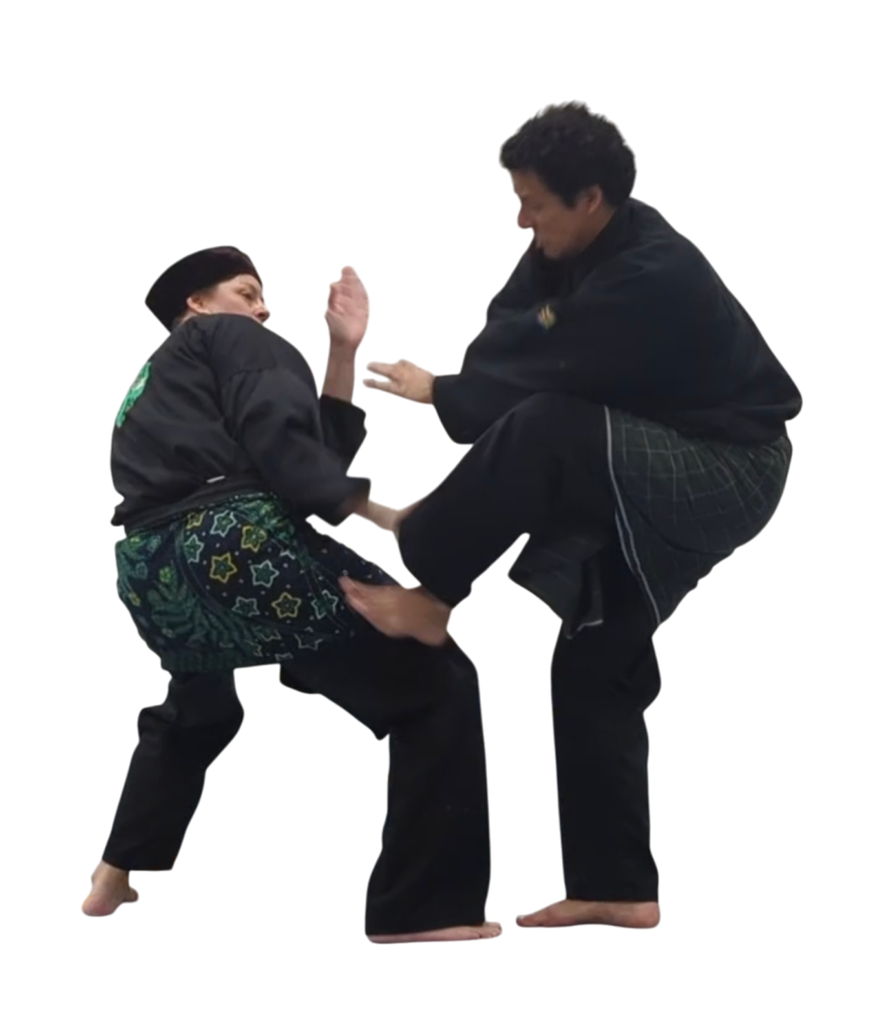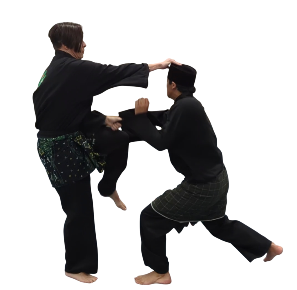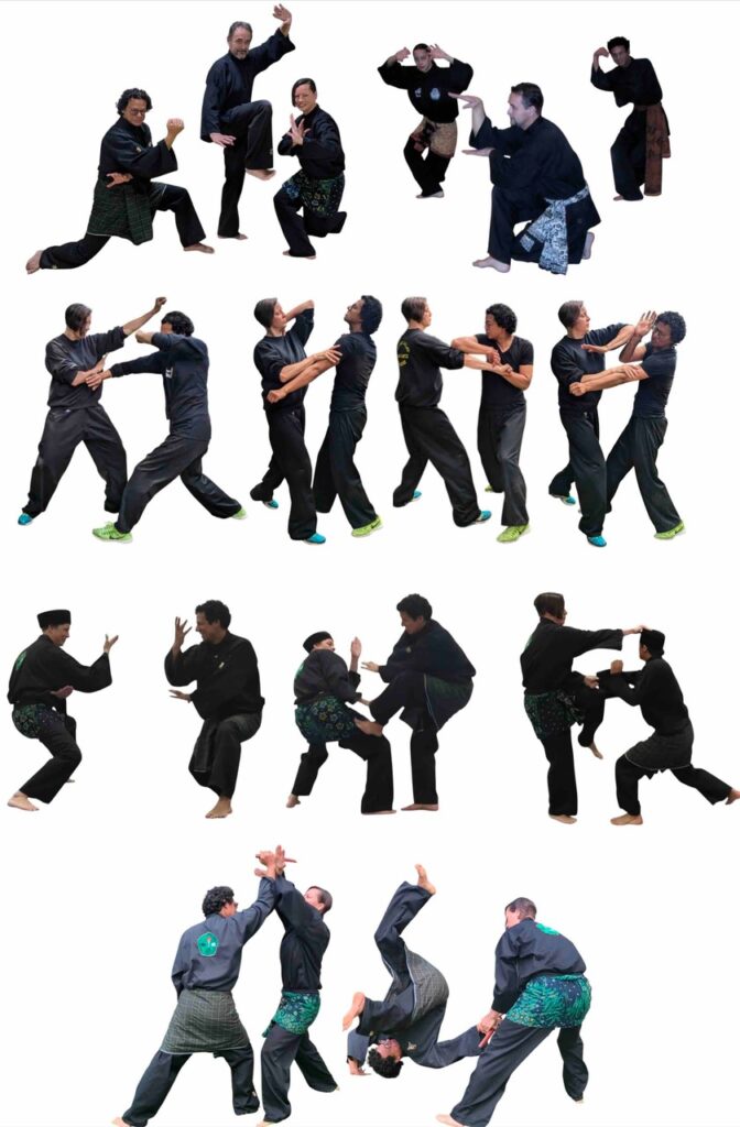 Langkah’s lopen: dit is een loop van technieken achter elkaar. Het ziet er sierlijk uit, maar zijn als technieken tegenover elkaar heel explosief en effectief.