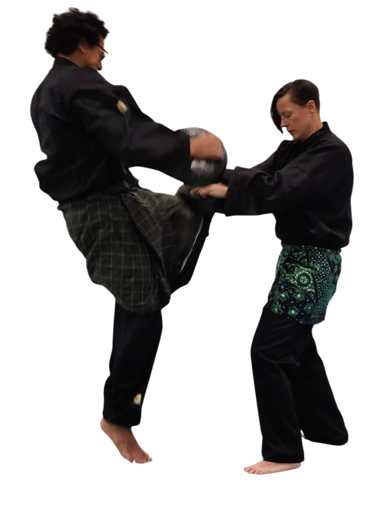 Onze Cimande stijl heeft veel lage houdingen, dus goed door de bovenbenen zakken en de rug recht houden. Door de benen goed uit elkaar te zetten, goed door de bovenbenen te zakken, staan we sterk, stabiel en vast op de grond en in een gevecht, verkleinen we hierdoor het gebied van ons lichaam, dat makkelijk aangevallen zou kunnen worden.